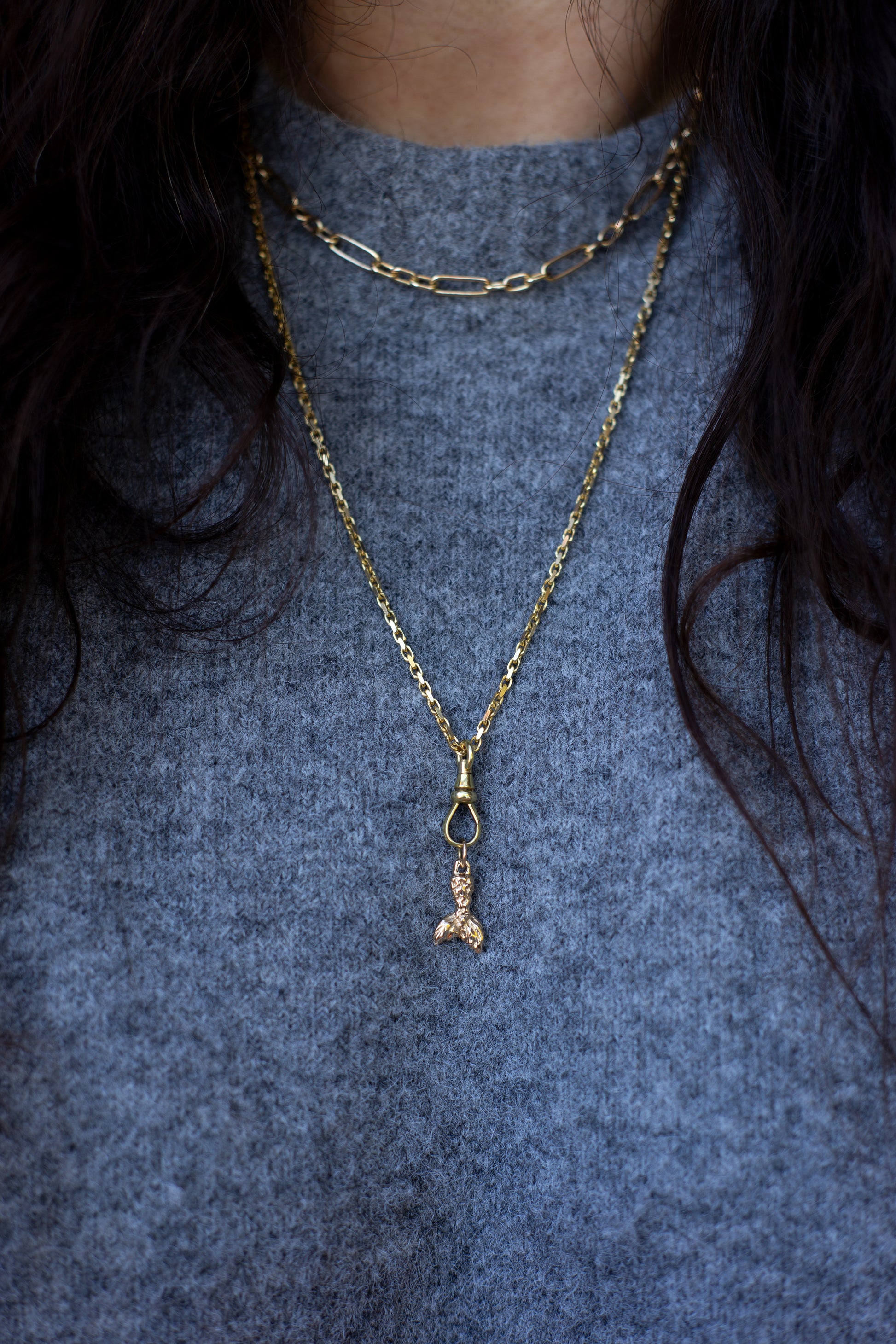 Hand carved in wax and cast in solid 14k gold, the Sirens Tail charm is a golden relic of the sea. The sculpted mermaid recalls a fragment of an ancient tale, worn smooth by the tides. A talisman for those who feel the pull of the ocean, who follow intuition over reason, and find magic in what lies beneath the surface.