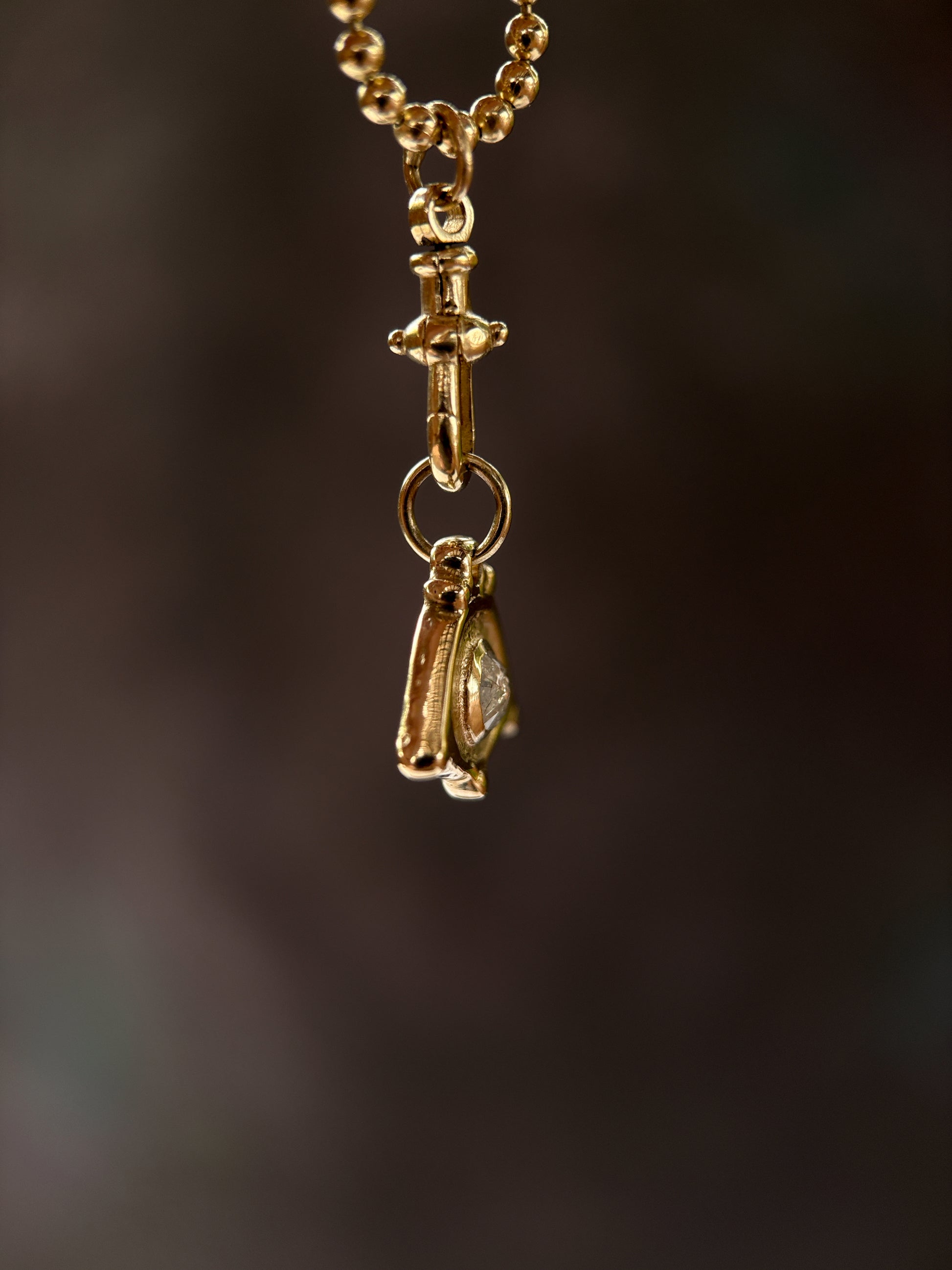 Hand carved in wax and cast in solid 14k gold, The Seer’s Eye is a modern talisman inspired by ancient symbols of protection and inner vision. At its center, a 4mm Ice Rose Cut Diamond from Misfit Diamonds. The diamond reflects soft, silvery light; a reminder to trust your intuition and see with clarity.